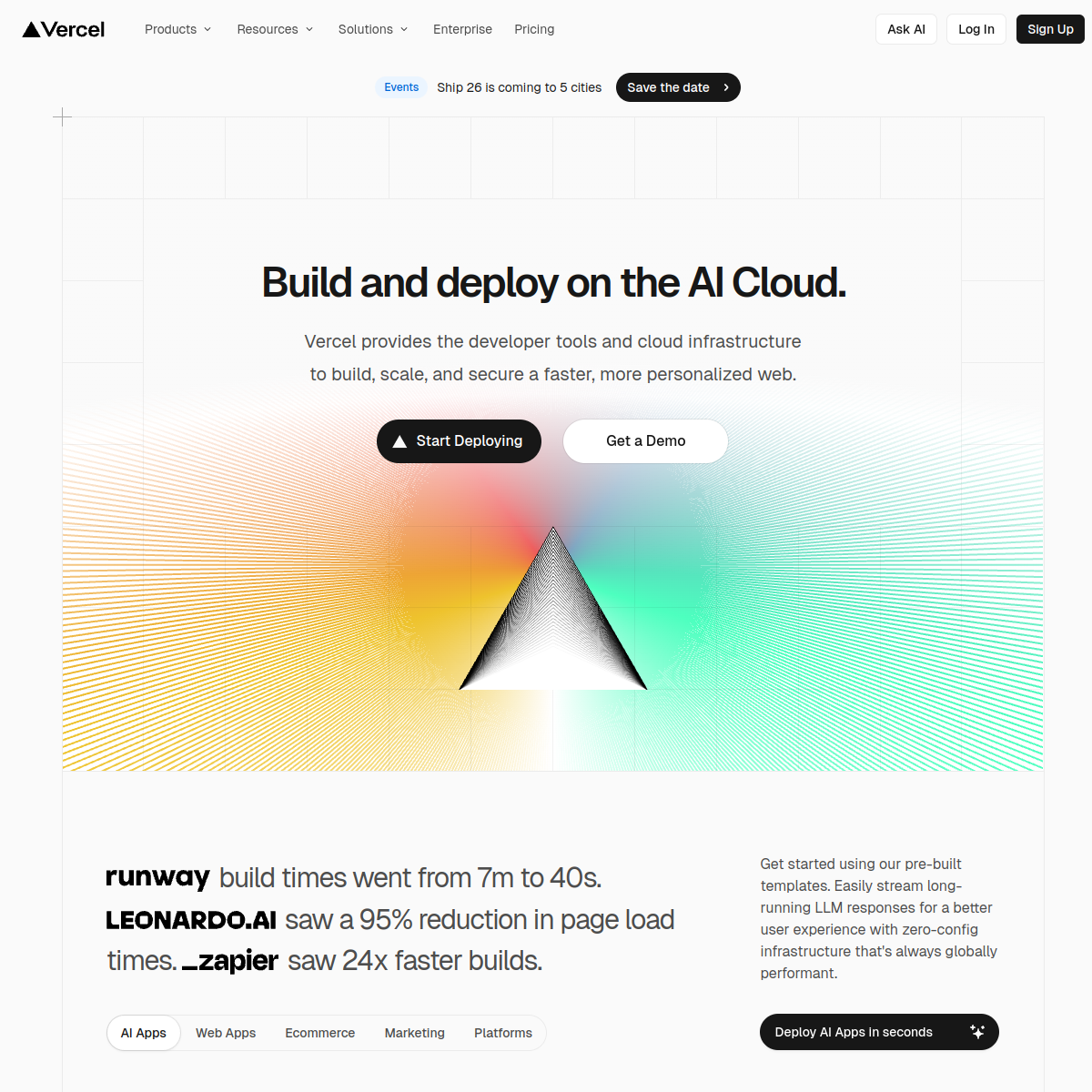 Vercel's web presence is functionally sound for human users but technically 'noisy' for bots and crawlers. To align with their brand as an industry leader in web performance, they should prioritize the implementation of structured data and AI-specific discovery protocols.